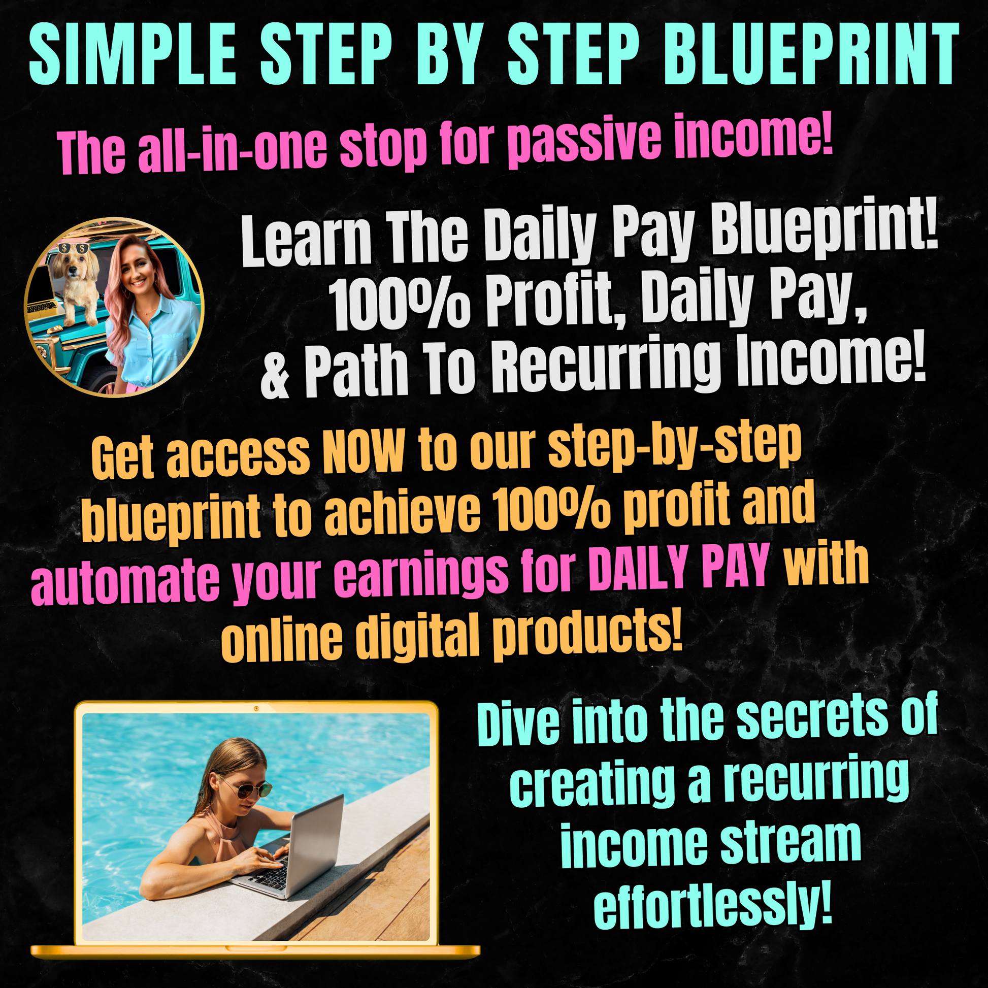 Get access NOW to our step-by-step blueprint to achieve 100% profit and automate your earnings for DAILY PAY with online digital products!